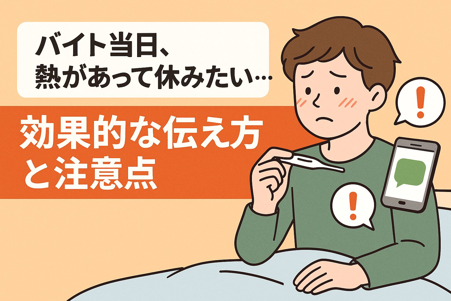この記事では、バイトを“熱で当日休む”ときの正しい判断と伝え方、注意点をわかりやすく解説します。これを読めば、焦らず丁寧に対応でき、信頼を損ねずに休むことができますよ。