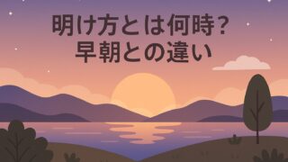 暮らしの疑問・お悩み 明け方とは何時?早朝との違いをわかりやすく解説 「明け方とは何時か?」を解説し、早朝との違いや時間帯の目安を紹介します。未明や夜明けとの比較も加え、暮らしや文化での正しい使い分けをわかりやすくまとめました。 暮らしの疑問・お悩み